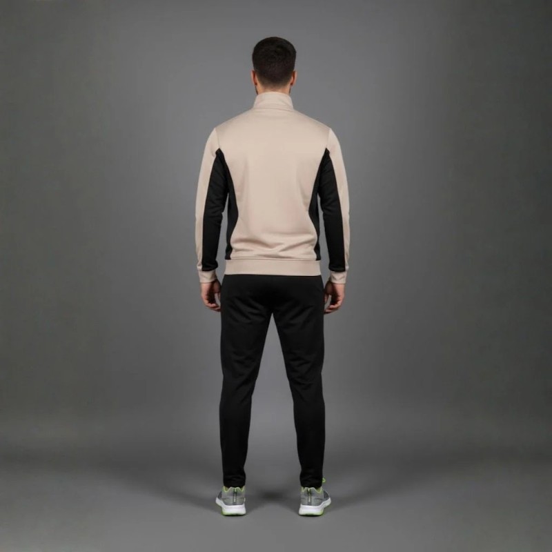 Survêtement homme beige en satin AUSLESE, alliant élégance, confort et allure moderne.